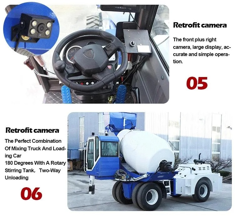 Constructed upon a heavy-duty engineering truck chassis, this unit ensures formidable load-bearing capacity and exceptional traversability across challenging terrain. The feeding system features a robust hydraulic excavator-style loading arm as standard, or an optional belt conveyor mechanism, enabling rapid autonomous loading of aggregates such as sand and gravel. The core mixing drum is fabricated from high-strength, wear-resistant steel plate, incorporating optimally designed spiral blades to guarantee thorough and efficient mixing. The metering system employs precision electronic load cells and water metering pumps, enabling automatic, high-accuracy proportioning of cement, aggregates, water, and admixtures. An integrated control panel beside the cab allows the operator to manage the entire process-loading, mixing, and discharge-with a single button. Key hydraulic and electrical components throughout the machine utilise internationally renowned brands, guaranteeing long-term stable operation.